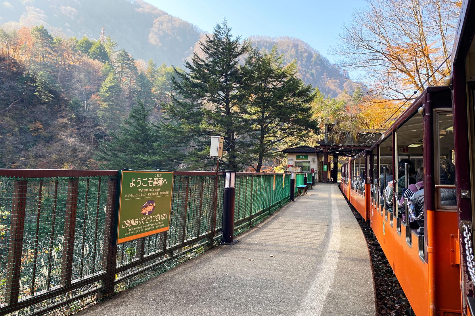 富山県黒部市の黒部峡谷鉄道宇奈月駅。