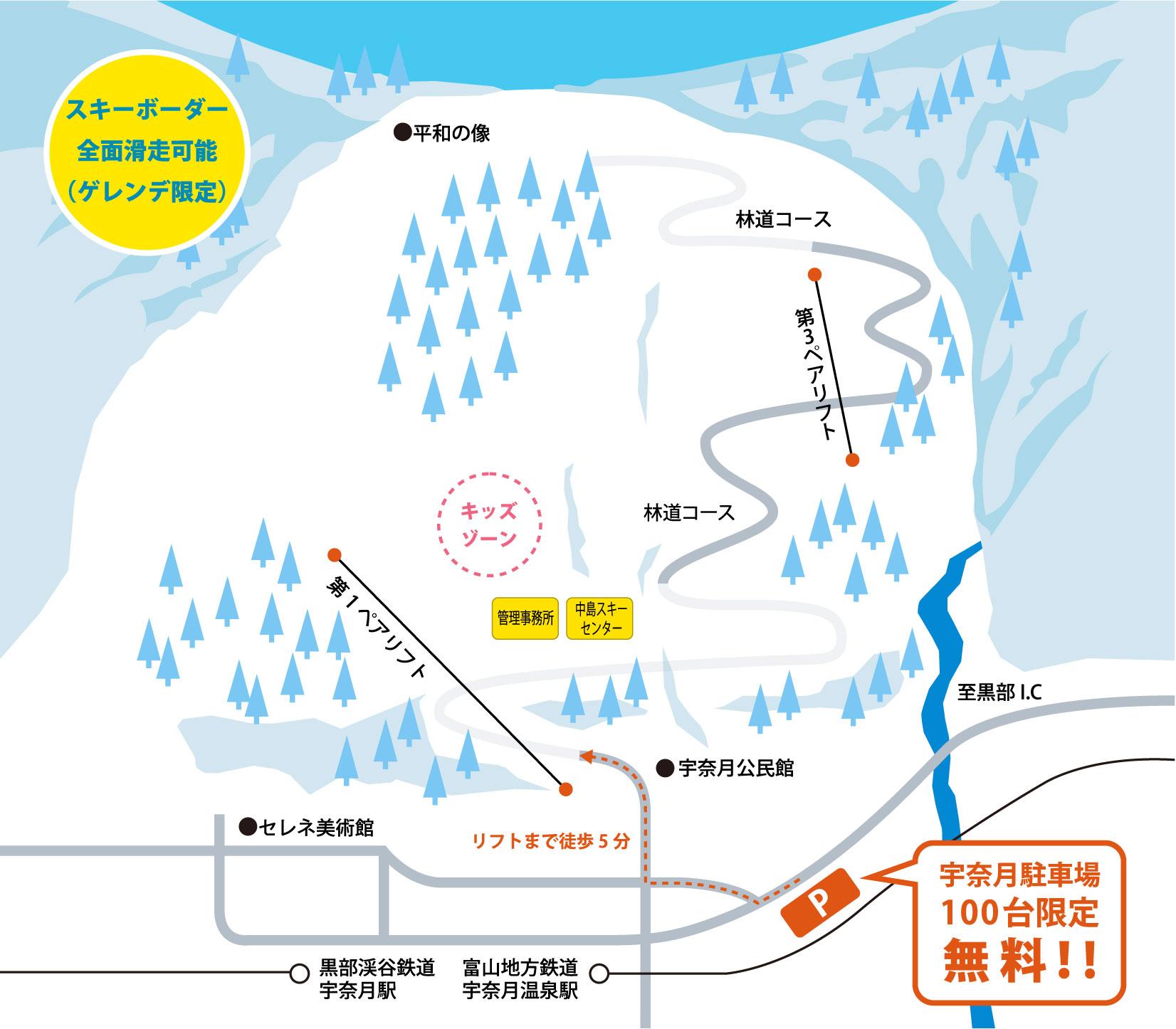 スキー場へ車で来た場合は、宇奈月駐車場が利用できます。