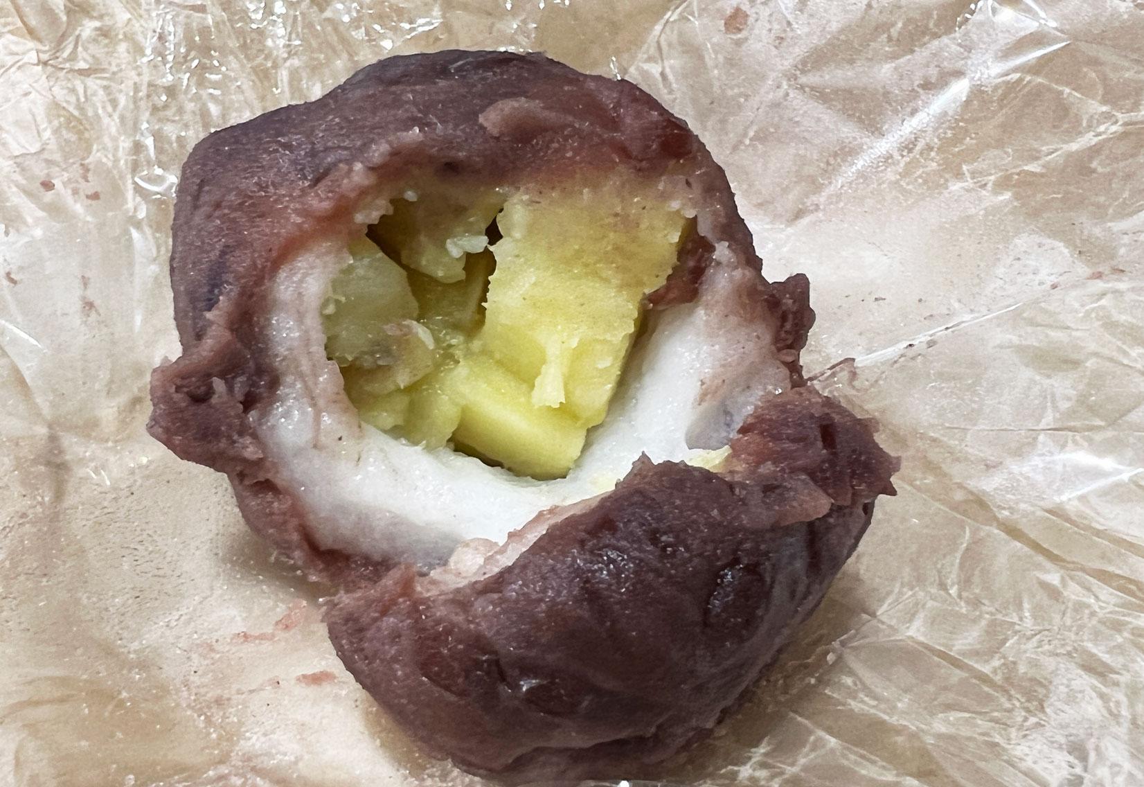 焼き芋を芋かいもちで包み、さらにのそれを餡子で包んだ贅沢な大福です。