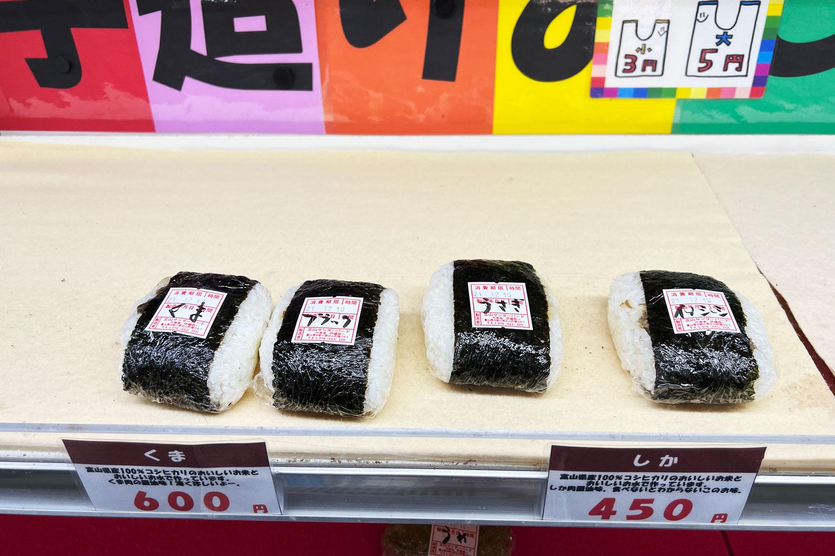 普通のおにぎりもあるのですが、次のように普通じゃない具のラインナップがあるのが立山サンダーバード流!