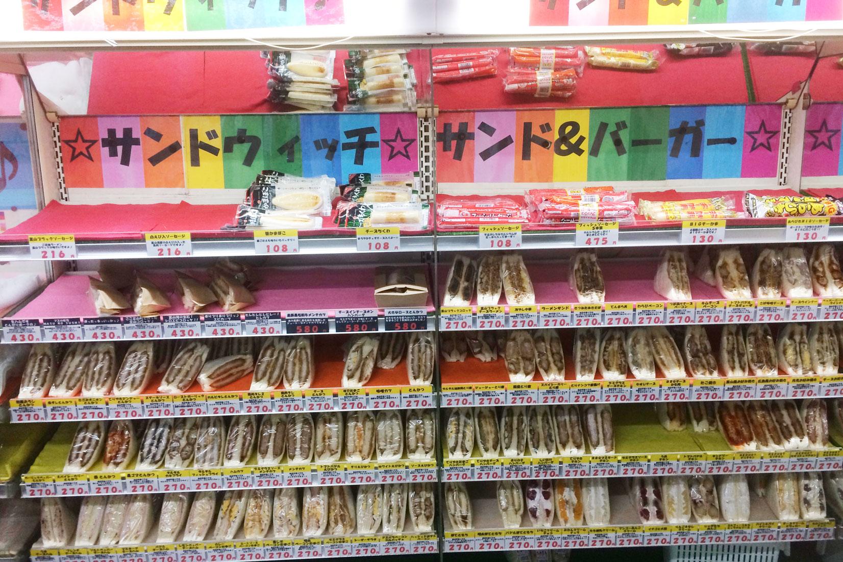 普通のコンビニであれば、ポテトサラダ、トマト&レタスなど多くても10種類くらいだと思いますが、立山サンダーバードは全部で100種類以上と桁違い!(笑)