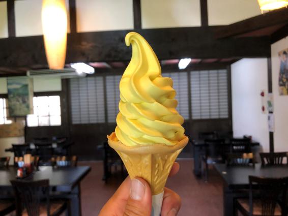 甘いものがお好きな方には、『ぼべらソフトクリーム』がおすすめです。五箇山では、昔から、かぼちゃのことを『ぼべら』とよんでいました。ラグビーボール型のかぼちゃを『五箇山ぼべら』と名付けています。
