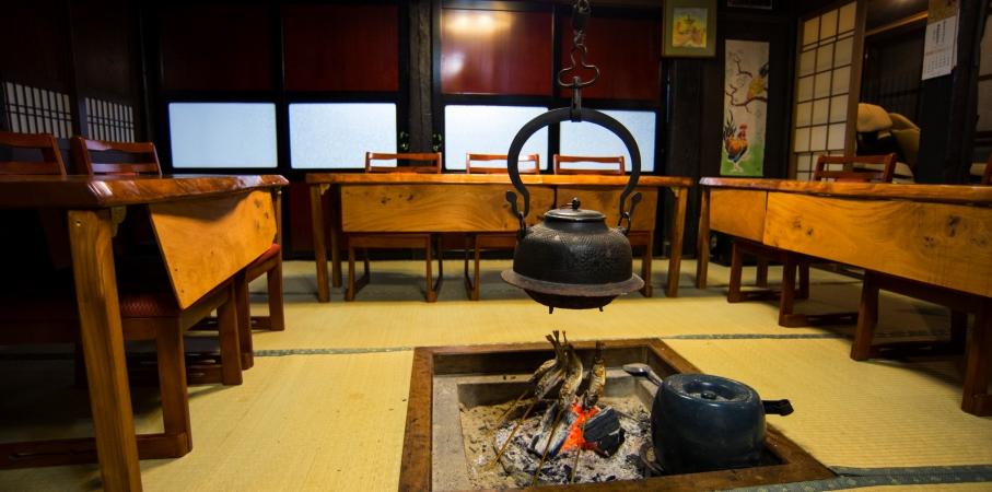 相倉で最も古い築350年の合掌家屋の民宿。家庭的なお宿でお寛ぎください。食事は椅子席で対応しております。