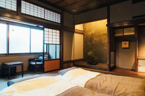 宿泊棟「KIN-NAKA」は、格式高い料亭「金中」をリノベーションした宿。木彫刻家・前川大地の作品があちこちに。滞在すると井波の歴史を感じられます。