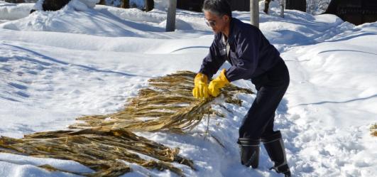1000年は持つといわれる「悠久紙」製造工房。自家栽培のコウゾを100%使用し昔ながらの製法を守り続ける。コウゾの「雪ざらし」は冬を代表する風物詩。