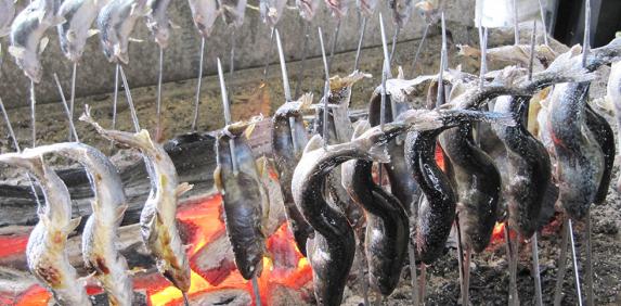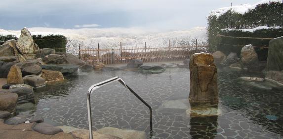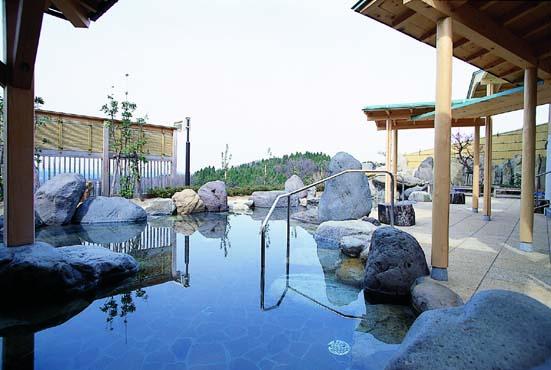倶利伽羅山や宝達山の雄大な山々を眺める大露天風呂。直売所では地元の新鮮野菜を販売しています。お風呂あがりには、岩魚の塩焼きがおすすめです。入浴前にご注文を!