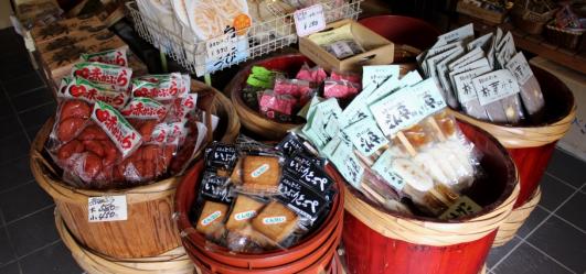 店頭には五箇山の名産品も数多く並び、お土産選びも楽しめます。