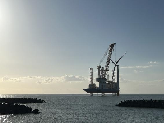 令和5年4月3日から入善町横山の沖合で始まった、世界最大級の自航式SEP船による洋上風力発電施設の建設工事が令和5年6月4日に完了しました。※風車の運転開始は令和5年9月予定