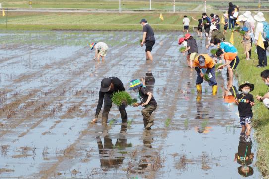 毎年5月下旬にJAみな穂青壮年部主催で親子100名参加で田植えイベントが行われ、50aの田んぼに7種類の古代米等で絵を描きます。