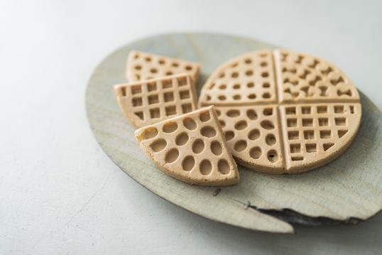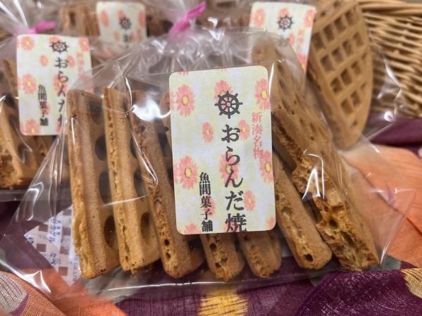 新湊内川地区で昔から愛される「おらんだ焼き」を手掛けるお店。ワッフルのような見た目に反して軽くてサクサクとした独特な食感のお菓子は、どこか昔懐かしさを感じさせてくれます。