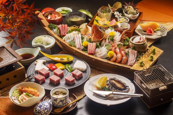 人気No.1の宿泊プラン ご夕食には、目利き30年越の玄人が“毎朝厳選”する、氷見浜直送の【氷見魚三昧コース】がいただけます。<豪華舟盛り7種> メインは<のどぐろ、アワビ>からお好きなほうをチョイス 小鉢には<富山の海の幸ホタルイカ、白エビ、紅ズワイガニなど>を季節に合わせてご用意 ※漁の状況によって記載の食材がご用意できない場合がございます。何卒ご了承くださいませ。