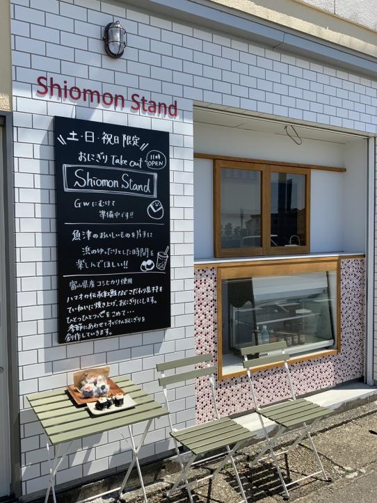 | 料金 | しおもん 300円~ おにぎり 150円~ ※地元のお茶やクラフトビール、地酒、ジェラートもあります。 |