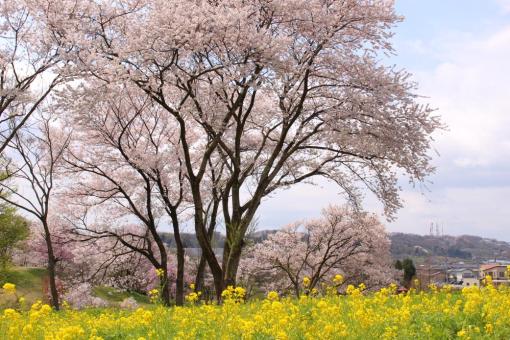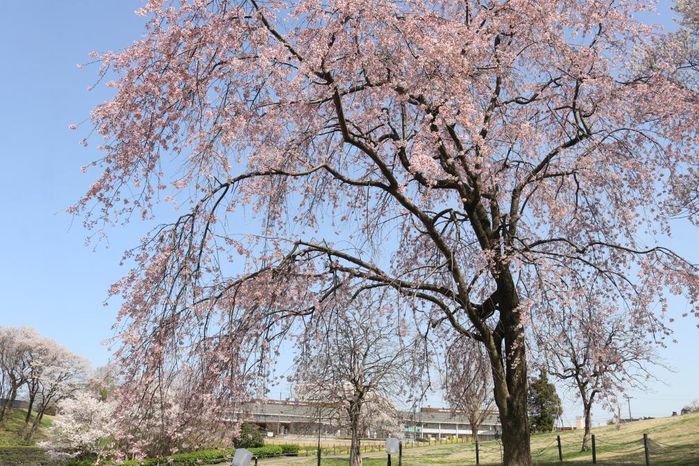 菜の花の名所として知られるだけでなく、桜の名所としても有名で、「ソメイヨシノ」のほかにも「エドヒガン」や「くれはおとめしだれ」といった珍しい品種の桜も鑑賞できます。春には、多彩な桜が園内を彩り、多くの花見客でにぎわいます。