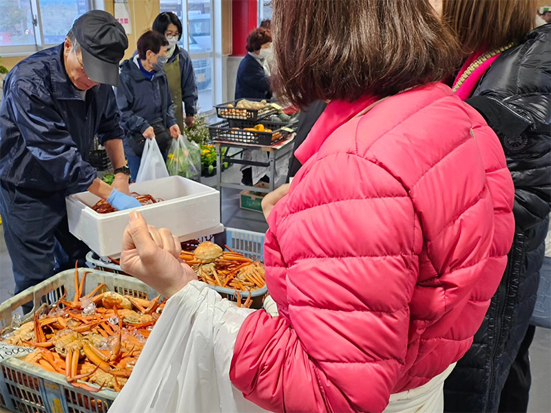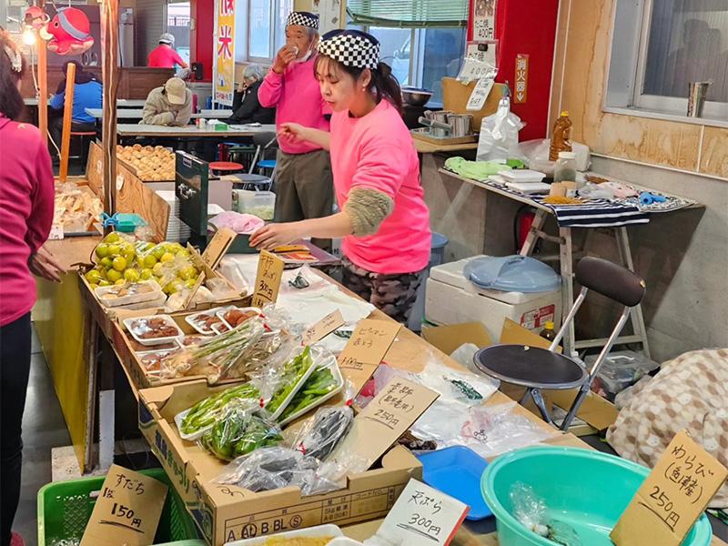 海の駅蜃気楼では、地元の新鮮な魚介や野菜が並ぶ「魚津の朝市」が、毎月第4日曜日に開催されています。
