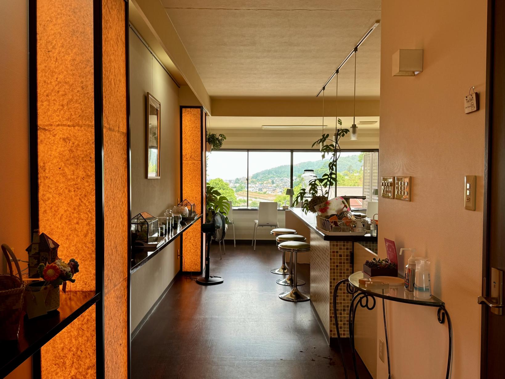 雑貨を眺めながら過ごすのも楽しく、八尾の町歩きの途中でふらりと立ち寄って、足を休める“お休み処”としてもぴったり。坂の多い町並みを歩いたあとに、ホッとひと息つける憩いのカフェです。