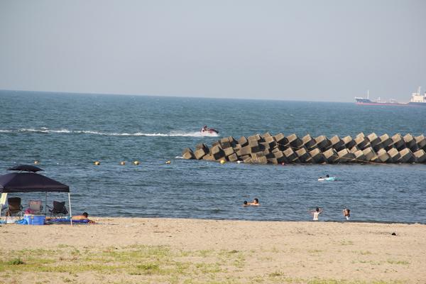 八重津浜海水浴場は、富山市の中央を流れる神通川の西側に位置します。ウィンドサーフィンなどのマリンスポーツのメッカとしても知られており、一年を通して、水上バイクを楽しむ人の姿が見られます。若者達の姿が多く活気溢れる印象。立山連峰を望む眺めも大きな魅力です。