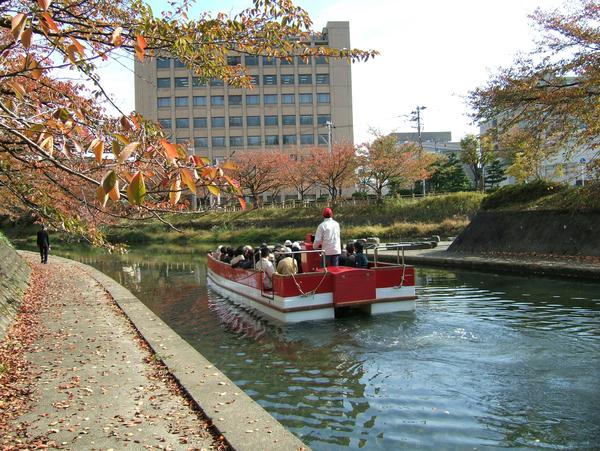 富山城址公園の脇を流れる松川、実はかつて蛇行して流れていた「神通川」のなごりの川です。1921年に今の流れになりました。今はすっかり富山市民の憩いの場となっています。県内屈指の桜の名所として、春には多くの花見客で賑わいます。川べりは、彫刻公園として整備され、28作品が道行く人々の目を和ませます。また、7つの橋をくぐる遊覧船からは、地上とは全く異なった景色が広がり、特に桜のトンネルを潜り抜ける春の景観は圧巻です。富山の人たちは、川をとても身近なものと感じ生活しています。どうぞ松川でそれを感じてみてください。