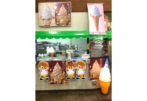お食事には、毎朝入荷で早々に売り切れ必至の「ますの寿し」の他、「ごへい餅」や「鮎の塩焼き」など、その場でいただきたいご当地グルメも充実!デザートに、とちの実のはちみつを使った「とち蜜ソフト」をはじめ、季節限定「ソフトクリーム」もご用意しております!