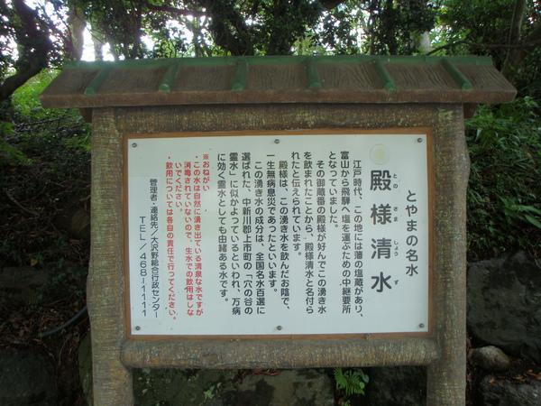 春日公園の東の一角にある「殿様清水」は、「とやまの名水」として多くの人が汲みに訪れる場所です。江戸時代、この地には富山藩の塩蔵があり、飛騨へ塩を運ぶ時の中継要所となっていました。その御蔵番の殿様が好んでこの湧水を飲んだことから「殿様清水」と名付けられたといわれています。殿様は湧水のおかげで一生無病息災であったそうです。このことから今でも守られ地域の人に親しまれています。駐車場がすぐ横にある便利なロケーション。神通峡散策の際にはぜひ立ち寄りたいスポットです。