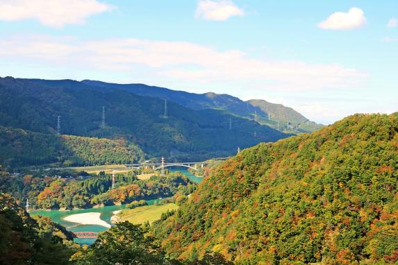 飛騨の山々の雪解け水が激流となって岩を噛む、V字型にするどく切れ込んだ壮大な造形を見せる「片路峡(かたじきょう)」も、秋の紅葉が大変美しいことで人気です。