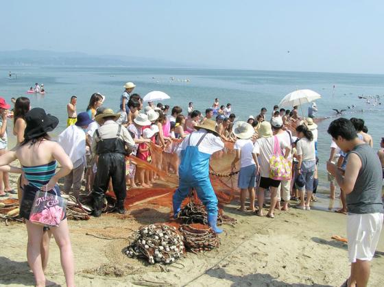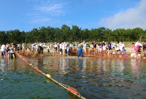 「日本の快水浴場100選」に認定されている島尾海水浴場では、地引き網体験をすることができます。地元の漁師さんと一緒に網を引いたり、魚をつかみどりできるので、大人から子どもまで楽しむことができます。家族や友達と力を合わせて獲った魚は、大漁鍋でコシヒカリで作ったおにぎりと一緒に味わうことができます。ぜひ、夏休みの思い出づくりにみんなで地引き網体験に参加してみませんか。