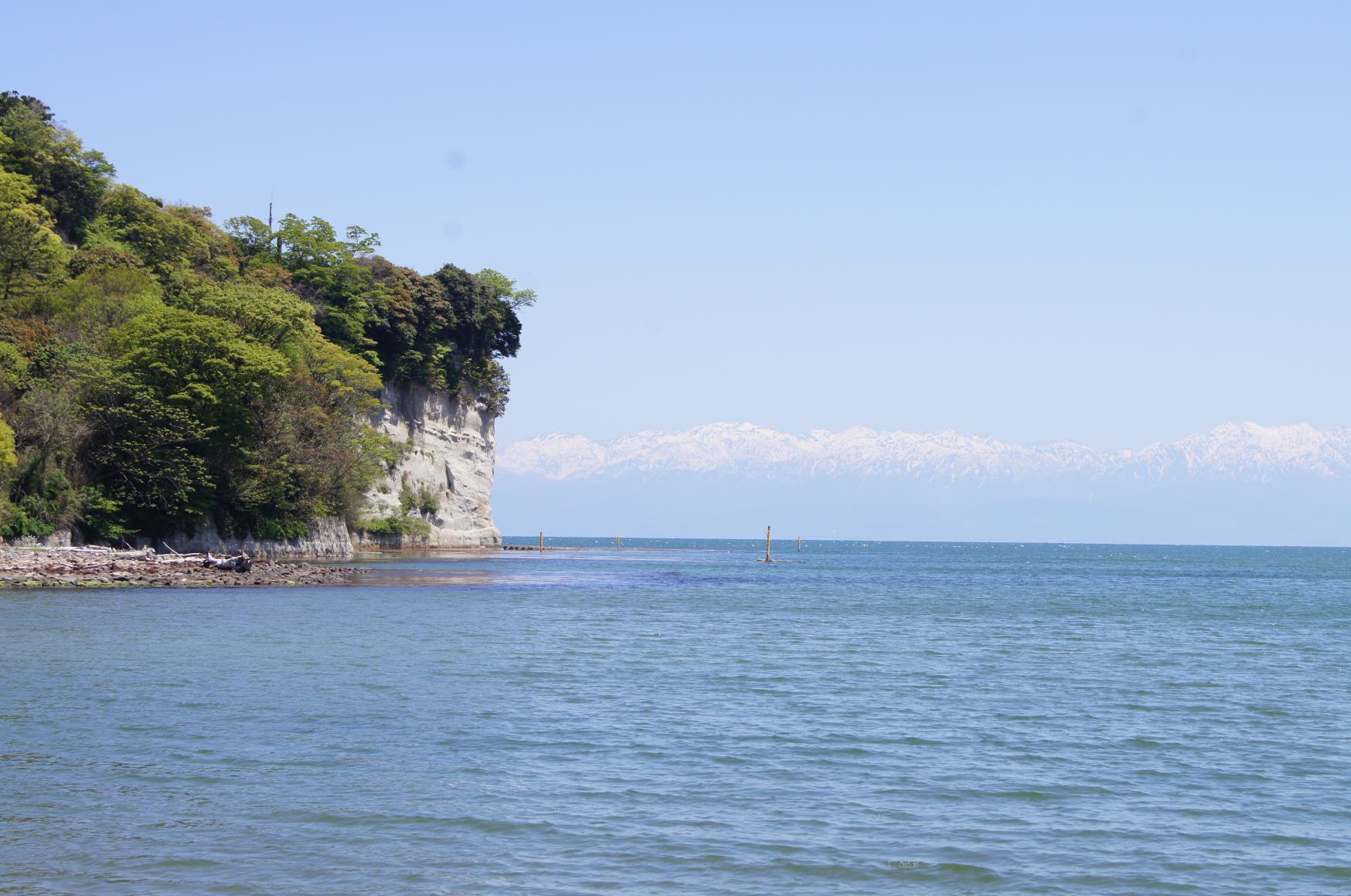 大伴家持の歌に「東風が強く吹くところ」と詠まれた景勝地。海に突き出す断崖の城跡です。阿尾城跡は県指定史跡であり、16世紀中頃に越中と能登の交通の要であるこの地に菊池武勝の居城として戦国時代末に築城されたといわれています。山を負い海に臨み、築城に適した地形であり、戦術上、「越中の府」といわれていた慶次郎ゆかりの地です。現在は公園として整備され、伝本丸には3mくらいの展望台が設置されています。展望台からは氷見ならではの素晴らしい眺望を楽しむことができます。美しい風景と歴史を学びに、ぜひ行ってみましょう。