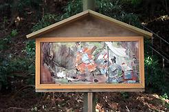 この地は1183年、木曽義仲が平家一族と白兵戦を繰り広げた古戦場としても知られ、喉の渇きを潤すために家臣のすすめで、弓でがけ下に矢を射ったところ、そこから清水が湧き出たと伝えられています。これが弓の清水という名前の由来にもなっています。この清水はどんな日照りの時も枯れたことがなく、また、病気の人も この水を飲むと治ると言い伝えられています。こんこんと湧き出る水は、源平の歴史を今も思い起こさせてくれます。