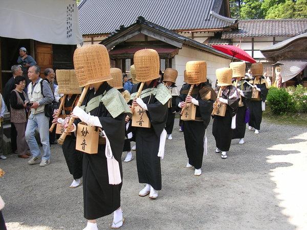 6月に行われる開山忌には、虚無僧の尺八と読経の大合奏は山々にこだまし神秘的なムードに包まれます。