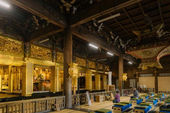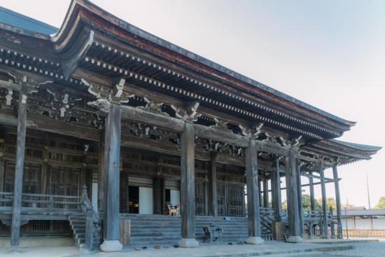 2022年12月に新たに国宝に指定された「勝興寺」は、越中における浄土真宗の触頭(ふれがしら)で、本山に準じる連枝寺院あるいは別院格の寺院としては破格の規模と形式を誇ります。「本堂」、「大広間及び式台」の2棟が、2022年12月に国宝に指定されました。寛政7年(1795年)に建てられた本堂は、本願寺阿弥陀堂を規範とし、本願寺の宮大工によって図面が引かれています。1998年から23年かけて実施された「平成の大修理」によって、「本堂」や「大広間及び式台」、「書院及び奥書院」等12棟の建造物が復元修理され、江戸後期の姿が蘇りました。