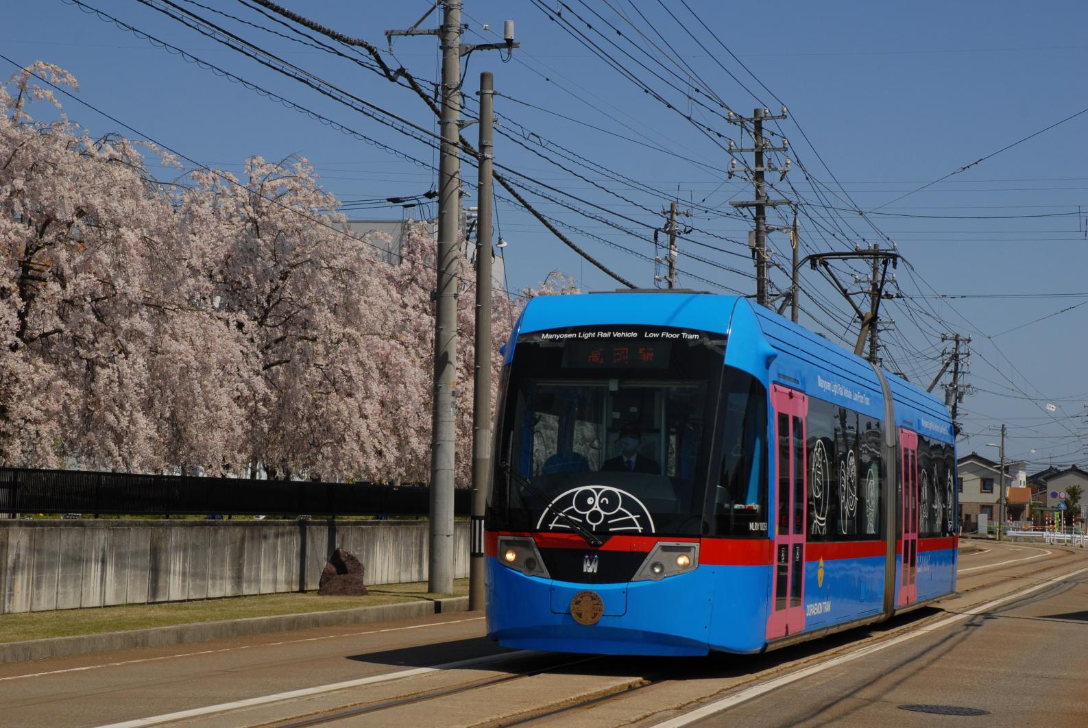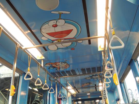 高岡市出身のまんが家藤子・F・不二雄さんの代表的キャラクター「ドラえもん」は、2112年9月3日に誕生。ドラえもんの「生誕100年前」を記念して、2012年9月に運行を開始しました。