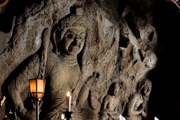 国指定史跡・重要文化財の磨崖仏で知られる大岩山日石寺は、写仏や、巡礼、滝行などの修行体験ができることでも有名です。