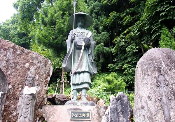 地名の由来は、弘法大師が村人の願いを聞き、その幸せを祈って護摩をたいたことによるものとされています。細い山道をひらすら進むと護摩堂に到着。途中見晴らしの良いところからは、富山湾と富山平野が一望できます。しばし足を止め、眺望を楽しんでみてはいかがでしょうか。