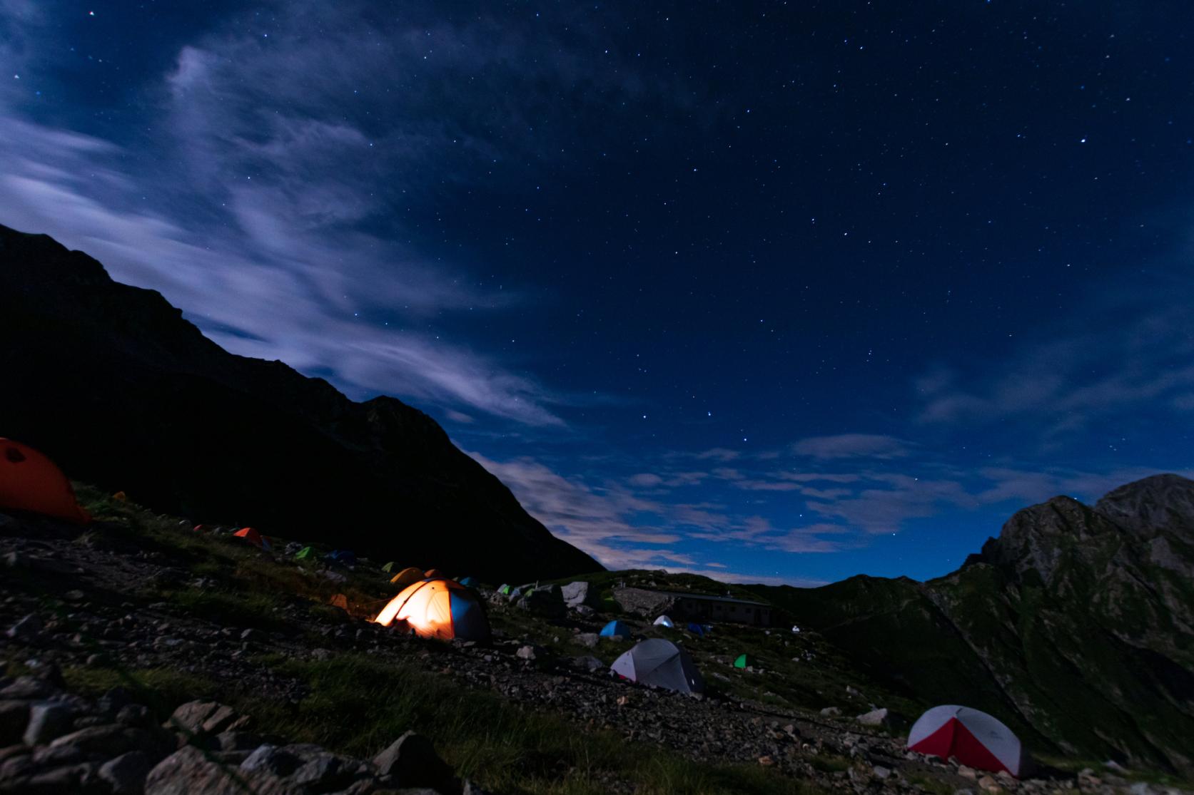 山々に囲まれたキャンプ場からは、針の山と呼ばれるほどの雄大な光景の剣岳や立山連峰のため息が出そうななほどの美しい絶景が。夜空を見上げれば、何千もの光り輝く星空に感動です。