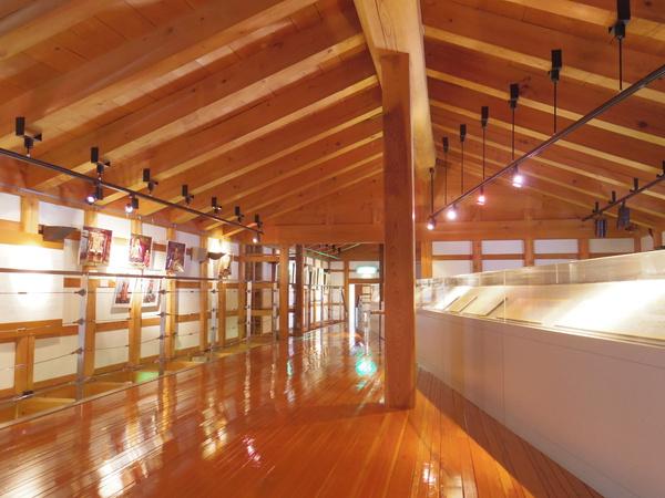 風情ただようまち並みで目を引く、板張りの趣きある建物。4つの蔵が回廊で結ばれ、その脇には雰囲気のある小路が通ります。曳山会館に直結している館中に入れば、天窓からのあかりに包まれた真っ白な蔵の美しさに感動!回廊をたどりながら4つの蔵をめぐると、土蔵そのものが展示品となっているため、建物の構造や景観の美しさを堪能できます。また、城端の歴史や文化、先賢の功績などの展示品の数々はみごたえ十分。