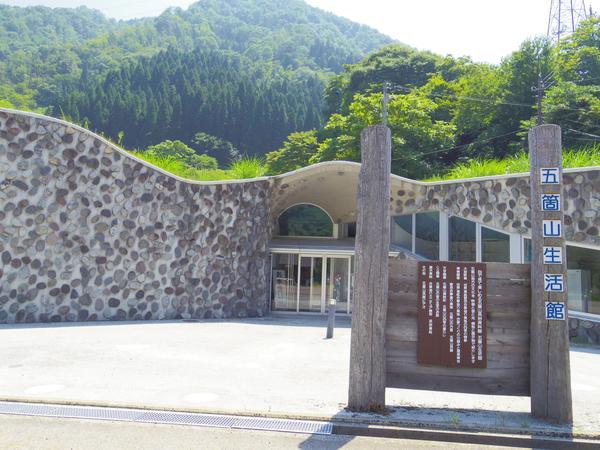 大自然のなかの石垣・・・周辺の地形に合わせて曲線を描く屋上・・・。まさかこれが建築物とは!と驚かされる五箇山の民俗資料館が、ここ五箇山生活館。