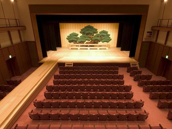外観内観ともに美しく、壮観なたたずまいを見せるじょうはな座は、多くの人が集い、出会い、感動を共有することのできる会館です。伝統芸能の継承と現代文化の創造をコンセプトに造られており、400席の本格的な舞台をはじめ練習室、会議室も完備されています。