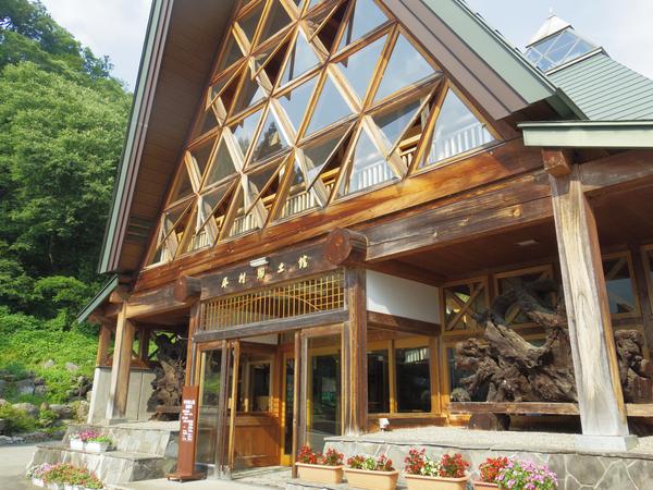 一歩足を踏み入れると、そこは中央吹き抜けの大空間、ホールには復元された竪穴式住居があり、好奇心を掻き立てられます。合掌造りの手法を生かして建てられた本館は、地元の立山杉や欅(けやき)の天然木をふんだんに使っており、温かい木の優しさに包まれます。館内では、原始時代から今日までの歴史や産業・文化を、映像などを用いてわかりやすく紹介してくれ、五箇山の伝統文化を肌で感じることができます。