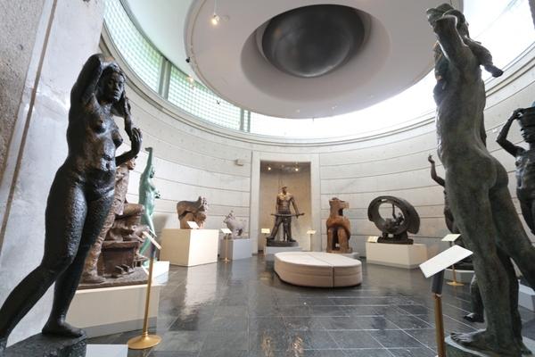 松村外次郎記念 庄川美術館は庄川水記念公園内の高台にある。平成元年11月に、砺波市庄川町出身の彫刻家二紀会名誉会員 松村外次郎(1901~1990)の作品寄贈をきっかけに開館した。常時外次郎作品を外次郎記念室にて紹介し、企画展示室において地域の作家の彫刻や絵画などの展覧会を開催している。本年度は「松村外次郎展」「日本画 燦々」展など8企画展を開催し、企画展ごとに収蔵作品を入れ替え、一般むけの実技講座を行うなど、小規模ながら美術の振興に努めている。