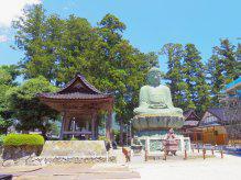木々に囲まれた静かな光照寺境内に、富山県三大大仏の一つ、庄川大仏が鎮座されています。実はこの大仏、青銅色をしてはいますが、コンクリート製。コンクリート産業で栄えた庄川町の生き証人として、町の人々を見守ってきました。昭和5年同寺尼講が中心となり建立されたもので、完成は昭和7年6月。