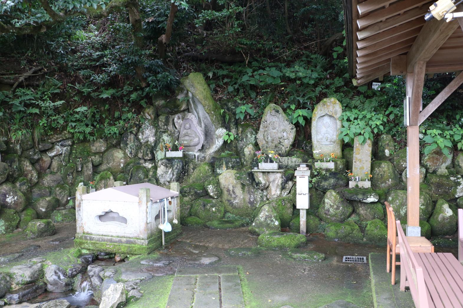 おいしいコーヒーや料理の水として人気の高い瓜裂清水は、全国名水100選に数えられているおいしい水。およそ600年前、瑞泉寺の開祖である綽如上人がこの地に休息に訪れた際、連れていた馬の蹄が陥没し、その跡から清水が湧き出たといいます。その清水は、村人が献上した瓜が自然に裂けるほどの冷たさでした。冷たくておいしい瓜を食べた綽如上人はとても喜ばれ、その清水を「瓜裂の清水」と命名したと伝えられています。