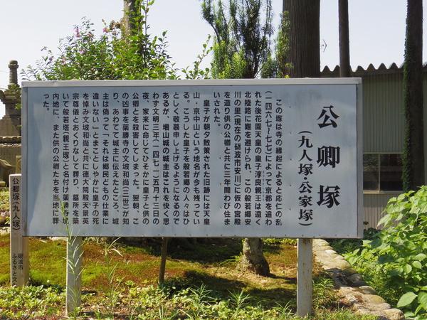 般若野荘の領主であった徳大寺実通が葬られたと伝えられる塚。中央の宝篋印塔は昭和44年秋に建立されたものです。そしてその周辺に五輪塔が多数あります。五輪塔は、多くは領主層の手によって建てられたと考えられていて、供養や墓石を目的として作られたものだそうです。市内では数少ない中世の塚であり、貴重です。
