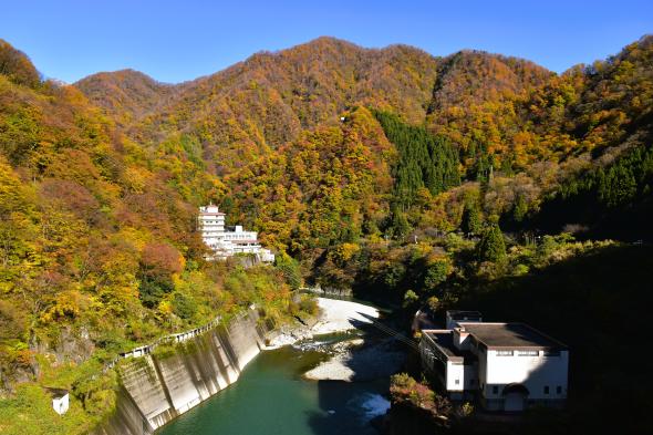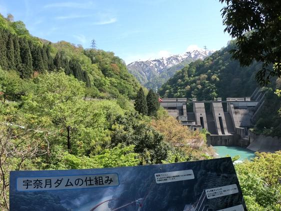 宇奈月ダム上流にある、ダムの役割や仕組み黒部川の自然などについて体験で楽しみながら学べる施設です。館内には黒部川流域の自然の雄大さを伝えるパノラマ写真や富山県の衛星写真が床一面に広がるほか、大型地形模型、リアルタイムで情報が提供できる検索装置やミニシアターを設置。イメージキャラクターの「ウナッキー」と「ヅッキー」のかわいらしい猿の親子が、分かりやすくダムの仕組みや歴史を教えてくれます。かつて使われていた引湯管(木管)と現在使われている引湯管の両方が展示されています。最近はダムカード目当てに来られる方も増えてきました。ダム下流にはガラス越しに見学できる操作室があります。また監査廊(通廊)と呼ばれるダムの中のトンネルは毎月1回見学会が開かれています。その他の日でも事前予約による見学可能。
