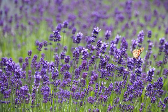 開花時期である5月~8月頃まで様々なハーブの花や香りを楽しむことができます。5月下旬に一番早く開花する「チャイブ」、6月になると黄緑の花が美しい「アルケミラ」、ハーブ会の女王とも呼ばれる甘い香りの「ラベンダー」など、次々とハーブの花が咲いていき、その数は40種類、約5万株もあります。