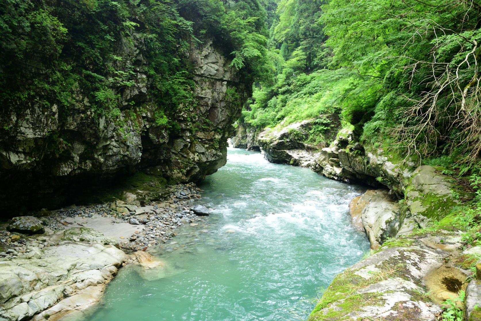 日本で2ヶ所しかない、特別名勝と特別天然記念物の両方に認定されている、昔猿が飛び越えたと言われている「猿飛峡」。黒部川の本流にかかる朱色の高さ34mの橋「奥鐘橋」。岩壁をえぐりとるように造られた迫力満点の遊歩道「人喰岩」など、まさに大自然の中の絶景づくしの景勝地を楽しめます。
