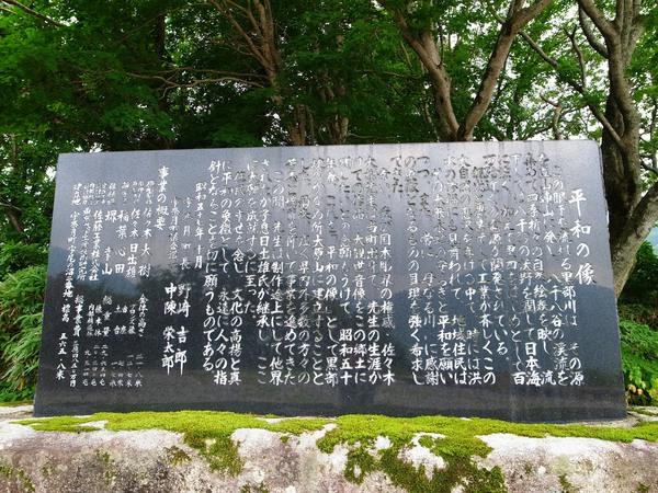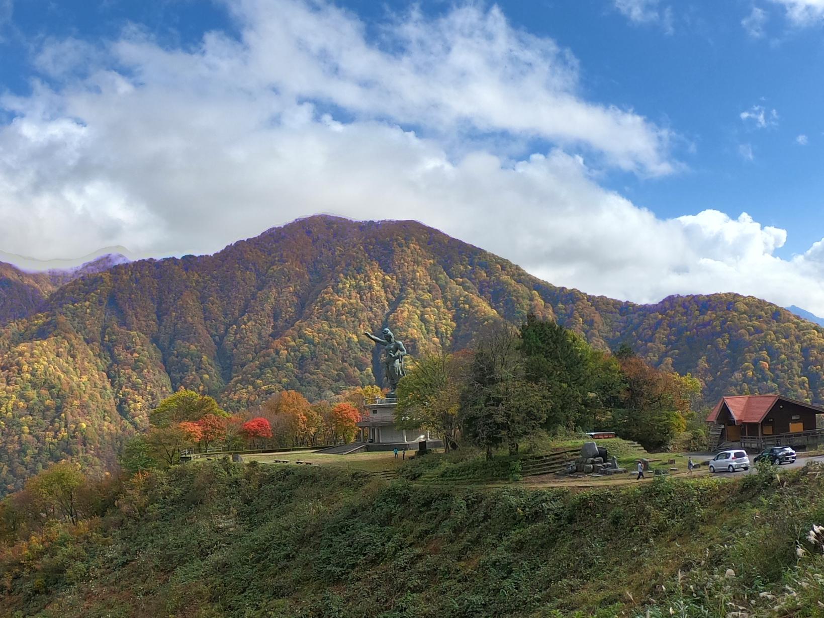 日本一標高の高い場所に立つブロンズ観音像です。宇奈月温泉街を見下ろす大原台自然公園にあります。高さ12.7mを誇る大作で、作者は宇奈月町出身の彫刻家、故佐々木大樹氏制作。夜はライトアップされ荘厳な雰囲気を漂わせています。紅葉が非常に美しい場所でもあります。とても細い崖道ですのでお車の方は十分ご注意ください