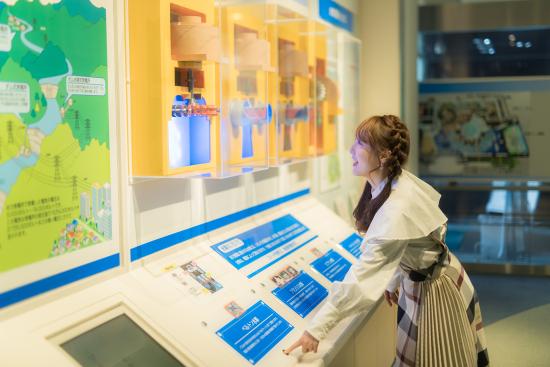黒部川の電源開発や黒部峡谷の自然と水力発電を紹介する記念館。令和5(2023)年3月にリニューアルオープンした館内では、黒部峡谷の自然や電源開発の歴史、水力発電のしくみなどをジオラマと迫力ある映像でダイナミックに紹介する「黒部峡谷ジオラマシアター」をはじめ、「ダムダムクイズシアター」では黒部川水系にまつわる様々な情報を参加型クイズ形式で楽しく学ぶことができる。