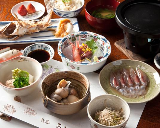 保存料、化学調味料を一切使用せず天然素材の味を生かし、富山の魚を中心とした和食を提供しているお店です。お値段と用途に合わせてコースもあり、宴会や会食、記念日などの利用にも最適です。昆布〆やホタルイカ沖漬けといった富山ならではの名物も食べられます。おみやげとしても販売していますのでぜひご利用ください。