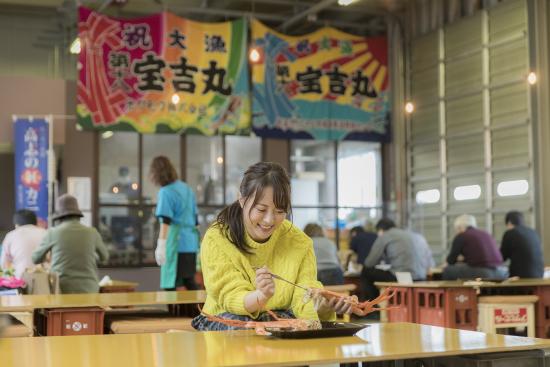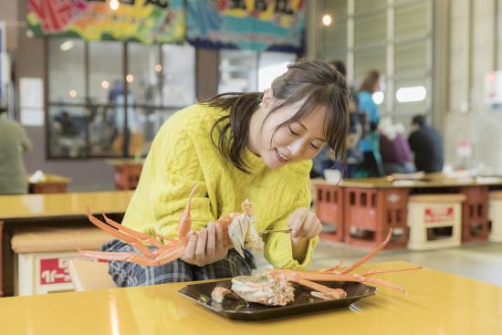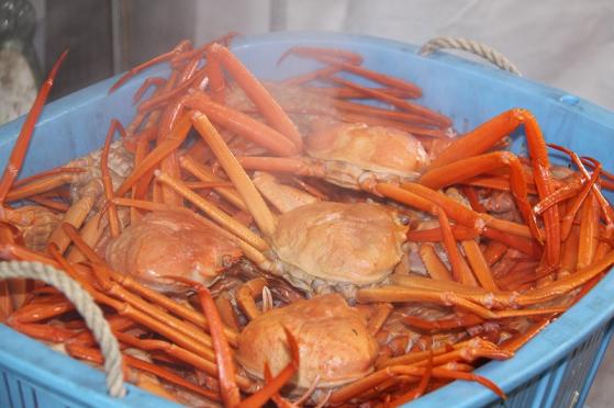 新湊漁港で水揚げされたばかりの高志の紅ガニ(こしのあかがに:ベニズワイガニ)を食べることができます。
