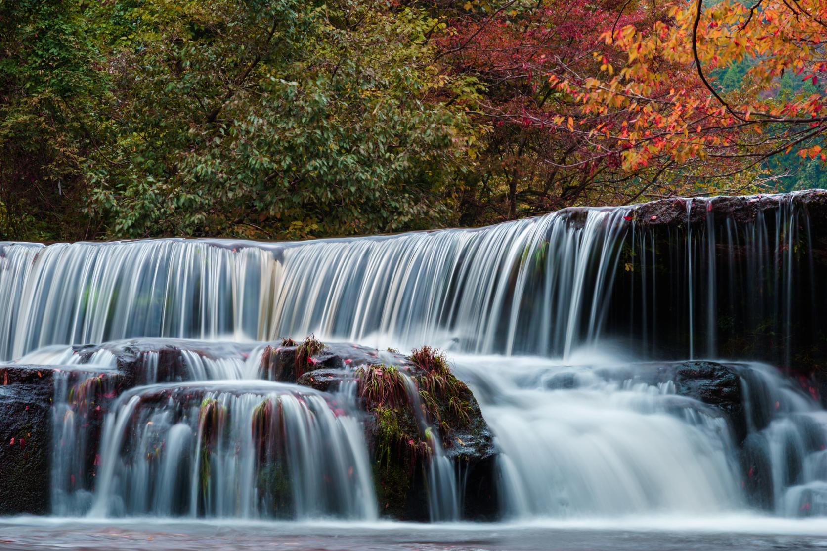 川幅いっぱいに流れ落ちる一の滝は、まるで小さなナイアガラ。小石や砂の粒が長い年月をかけて岩盤を削ってできたポットホールは、富山県の天然記念物に指定されています。他にも、二の滝、観音滝や鼓ヶ滝、上流には子撫川ダムなど見どころも満載! 子撫川探勝歩道も整備されており、散策に絶好のスポットです。