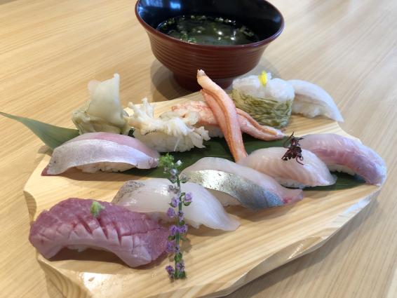毎朝市場へ行って仕入れる新鮮な魚介類が自慢。厳しい目利きで海の幸を買い付けていて、一年を通じて四季折々の富山の食材を楽しめる。シャリも醤油も富山産にこだわっていて、お寿司はもちろん、ダイレクトに鮮度が楽しめるお刺身もおすすめです。メニューも豊富で、寿司御膳や海鮮丼、一品料理では「お刺身盛り合わせ三種盛り」や「白海老の天ぷら」が人気。また、飲み放題付きの宴会コースも充実。富山県内に18ある酒造から季節に合わせた日本酒を提供。飲み放題プランでもお得に日本酒が楽しむことができます。店内は木材を使用した和の空間。テーブル席やゆったり使える個室もあり、家族や友人、仕事仲間など様々な顔ぶれやシーンで利用でます。